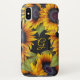 Elegantes stilvolles rustikales Land mädchenhafte große Sonnenblumen gerahmte Handy-Gehäuse mit einem Skript-Kalligraphie Monogramm / Ihr Name initialisiert auf einem dunkelbraunen Scheunenholz Hintergrund.