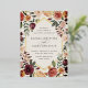 Diese elegante Blumen-Hochzeitseinladung für Herbst- oder Winterhochzeiten, ein Showstopper in reichen Erdtönen, verziert in einem länglichen goldenen Hexagon, umgeben von Aquarellfarben-Rose, Mums und Grün in rustikalen Herbstfarben wie Pfirsich, Elfenbein, Weiß, Bordeaux und Grün.