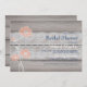 7 x 5 Rustikale Blumen und Spitzen Bridal Dusche Einladung. Korallenblumen und blauer Text auf rustikalem Holzboden. Personalisierbar. Teil einer Hochzeitsfestsammlung von Whimzy_Designs.