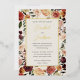 Diese elegante Blumen-Hochzeitseinladung für Herbst- oder Winterhochzeiten, ein Showstopper in satten Erdtönen, zeigt Ihre gerahmten Details durch Aquarellfarben-Rose, Mums und Grün in rustikalen Herbstfarben wie Pfirsich, Elfenbein, Rose, Bordeaux und Grün. Die Goldfolienbespannung rundet das Aussehen nach einer luxuriösen Touch ab.