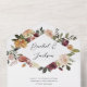 Eine wunderschöne Herbsthochzeit mit ihren Namen in Kalligraphie-Schriftzeichen, eingebettet in eine geometrische Grenze von Aquarellfarben-Blume und Botanicals in gedämpften Erdtönen von bordeauxfarbenen Marsala, Rose, Elfenbein und Salbei-Grün. Personalisieren Sie Ihre Hochzeitsdetails unten. Die beiliegende RSVP-Karte und der Faltstil machen diese Einladung zu einer ansprechenden Wahl.