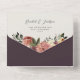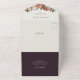 Eine wunderschöne Herbsthochzeit mit ihren Namen in Kalligraphie-Schriftzeichen, eingebettet in eine geometrische Grenze von Aquarellfarben-Blume und Botanicals in gedämpften Erdtönen von bordeauxfarbenen Marsala, Rose, Elfenbein und Salbei-Grün. Personalisieren Sie Ihre Hochzeitsdetails unten. Die beiliegende RSVP-Karte und der Faltstil machen diese Einladung zu einer ansprechenden Wahl.