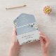 Die Hochzeitseinladung von Boho umfasst dustig blaue und beige Blume mit getrockneten Blätter.