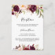Diese rustikale, bunt blumengeschmückte Rezeptionskarte ist perfekt für eine moderne Hochzeit. Das Design besteht aus rosafarbenen, lila, roten und bordeauxfarbenen, in eleganten Bouquets mit grünem Blätterdach aufgehauenen Bäckereien, die die natürliche Schönheit inspiriert haben.