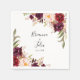 Diese rustikalen, bunten Blumenserien-Servietten sind perfekt für ein modernes Event. Das Design besteht aus rosafarbenen, lila, roten und bordeauxfarbenen, in eleganten Bouquets mit grünem Blätterdach aufgehauenen Bäckereien, die die natürliche Schönheit inspiriert haben. Machen Sie diese Servietten zu sich selbst, indem Sie die Namen der Braut, Bräutigam und Hochzeitstag eintragen. Diese Servietten können einen Hochzeitsempfang, ein Abendessen mit Probe, eine Verlobungsfeier und vieles mehr ergänzen!