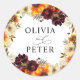 Rustic Boho Sunflower Burgundy Hochzeit im Herbst Klassischer Rundaufkleber
