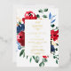 Eleganter Herbst Winter schick rustikale roter Bordeaux und marineblau florale Aquarellgolden Hochzeit mit Monogramm und Initialen, mit schönen bemalten blauen Rose, Peonies und lose florale Wasserfarbe und echte Goldfolie. Ideal für Winterhochzeiten im Herbst.