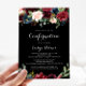 Diese rustikale schwarze botanische Einladung ist perfekt für einen klassischen religiösen Anlass. Das Design besteht aus bordeauxroten, marinierten, blauen und rot strahlenden Blume mit anmutigen, handbemalten, schwarzen Hintergrund, die die natürliche Schönheit inspiriere.