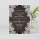 Diese Vintage und elegante Hochzeitseinladung eignet sich perfekt für ein stilvolles Ereignis. Auf einem rustikal-braunen Holzfußboden steht eine handgezeichnet, weiße Spitze. Es ist südlich, hübsch, süß, modern und einzigartig, das perfekte Design, um Ihre Gäste zu beeindrucken. ***WICHTIGE HINWEIS FÜR DESIGN: Bei jeder individuellen Designanforderung, z. B. passenden Produktanforderungen, Farbänderungen, Platzierungsänderungen oder anderen Änderungswünschen, benachrichtigen Sie den Designer. Sie können ihr sogar eine Anfrage für ein komplett individuelles und neues Design schicken.