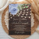 Hochzeitseinladung mit einem rustikalen, dunkelbraunen Holzfußboden und bunten Saitenlichtern mit periwinkelblauen Aquarellblumen. Ideal für die Scheune oder Hochzeit auf dem Land. Kontaktieren Sie uns für Hilfe bei der Anpassung oder der Anpassung von Produkten.