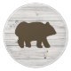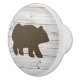 Ein brauner Bär über einem weiße Holzputz-Bauernhof mit dem Thema Hintergrund