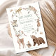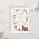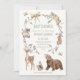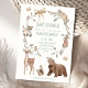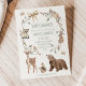 Süße geschlechtsneutrale Woodland-Tiere themed Baby-Einladung mit verschiedenen Waldtieren, Schmetterlingen, Bogen und Kranz.