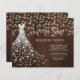 Weiß glänzende Diamanten Hochzeitskleid auf einem dunkelbraunen Holzboden mit Tinkellichtern und einer modernen, rustikalen, inspirierten Braudusche. +++++++++++++ BITTE LESEN SIE DIES VOR DEM KAUF! Dies ist eine preisgünstige Karte, die auf einem Blatt Papier gedruckt wird (jedes Blatt hat eine Karte). ++++ Für die beste Vergleichspreisqualität empfehlen wir die Auswahl des Semi-Gloss-Papiertyps (es ist dick genug, um für Schreibwaren verwendet zu werden) +++++ Wenn Sie Briefumschläge benötigen, wählen Sie die ENVELOPE OPTION. +++ Doppelter Karo alle Informationen und Rechtschreibungen Ihres Textes, weil Sie genau das erhalten, was Sie sehen - niemand anderes wird vor dem Drucken etwas Karo. ++++ Diese Karte ist für die Größe 4,5" x 5,6" konzipiert. Wenn Sie eine andere Größe der Karte wählen und Text außerhalb der Seite geht, muss alles repariert werden, bevor das Produkt in den Warenkorb aufgenommen wird. Bitte frag Live Design Service für Hilfe.