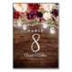 Rustikale Burgunder Blumenstrauß Hochzeit Tischnummer
