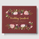 Elegantes Gästebuch mit bordeauxrotem Hintergrund, farbenfrohen Blume aus Marsala Rot, Bordeaux und Rosa Blütenfarbe, sowie einer leicht zu personalisierenden Textvorlage aus Goldfolie.