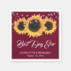 Rustikale bordeauxrote Servietten aus Hochzeitspapier, inspiriert von Sonnenblumen.
