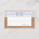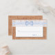 Rustikale, rustikale Hochzeitsbegleiter-Platzkarten, die in einem Brett-Look mit einem weißen Textbereich gestaltet wurden. Die Grafik eines weißen Spitzenbands und das hellblaue und weiße Gingham Band und Bogen strecken sich oben. Die passenden Hochzeitsprodukte sind erhältlich.