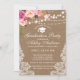 Einladungskarte für Rustikal Burlap-, String Lights und Lace Graduation Party - Rosa Blume