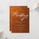 Befolgen Sie den Herbstfarben-Trend mit unserer Hochzeit im Herbst Orange bis Braun. Einfache weiße Typografie auf rustikalem Hintergrund für einen minimalistischen Look. Bohemische, an Terracotta-Ton erinnernde Farbtöne unterstreichen Ihre elegante Kalligraphie auf dieser trendigen Einladung.