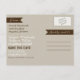 Rustikale Camouflage Country Foto Save the Date Cards - Postcard Design — mit einem Jagdhintergrund (Blätter, Rinde, Äste und andere natürliche Waldelemente) mit einem modernen und dennoch rustikalen Schriftart-Design auf Vorder- und Rückseite. Die Rückseite ist mit einem gedruckten Einbruchvektor als Hintergrund mit dekorativen braunen Tags versehen. Weitere Daten speichern: