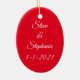 Erinnern Sie sich an Ihr erstes Weihnachtsfest mit diesem schönen Ornament! Auf der Vorderseite befindet sich ein Foto eines Bonbons mit der Liebe. Die Rückseite hat einen roten Hintergrund und kann mit Namen und Datum der Paare personalisiert werden. Das wäre ein großartiges Geschenk für frisch verheiratete Menschen oder sogar für eine Winterhochzeit.