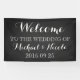 Individuelle Name- und Hochzeitstermin Begrüßung auf unserem Hochzeitsschild mit rustikalem Country-Chalkboard-Effekt-Muster und Vintager handgeschriebener Schrift. Eine perfekte persönliche Touch für Ihre rustikale oder waldreiche Hochzeit.