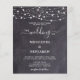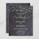 Mit diesen eleganten und rustikalen Chalkboards und Streichellichtern laden Sie Freunde und Familie zu Ihrer Hochzeit ein. Diese einzigartigen Hochzeitseinladungen aus Schiefer zeichnen sich durch elegante weiße Saitenleuchten auf grauem Tonschiefer aus. Personalisieren Sie diese Chalkboard-Hochzeitseinladungen mit Namen, Hochzeitstag und Ort. Sehen Sie sich unsere Hochzeitskollektion an, um Einladungen, Hochzeitsalben, Gastbücher, Party-Geschenke und vieles mehr zu erhalten! COPYRIGHT © 2020 Judy Burrows, Black Dog Art - Alle Rechte vorbehalten. Rustikale Chalkboard String Lights Hochzeitseinladung