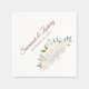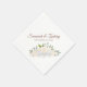 Diese wunderschönen Servietten sind einfach, elegant und rustikal gestaltet. Die Offset- oder diagonal platzierte Grafik ist so konzipiert, dass die Serviette bei einem 45 Grad Winkel aufrecht liest. Das Hotel verfügt über einen hübschen, handbemalten Aquarellzug aus Rose, Blumen und Gartengrün in hellen Champagner-Rosetten. Es gibt Platz für die Namen des Paares und das Hochzeitstag.