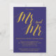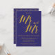Eine schicke, rustikale Einladung, die "Mr. and Mr." mit Schriftzeichen in goldener Farbe über kobaltblauen Hintergrund. Alle Ihre Daten werden in einem schönen Serifentypo geschrieben. Das perfekte Papier für diese Einladung ist die handwerkliche Kraft, abhängig von der Art von Papier, das Sie wählen, die Farbe kann variieren. Diese Einladung zu einer Gesprächsparty ist vollständig anpassbar, Schriftart-Stile, Hintergrundfarbe, Design, Farbe, lass mir wissen, wenn Sie eine besondere Anfrage haben. Briefumschlag und Briefumschlag in den USA sind erhältlich
