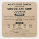 Rustikales Cookies Hütte Law Label in einem modernen Schwarz-Weiß-Design mit elegantem Kalligraphie-Schriftart, Platz für Ihren Firmennamen, Adresse, Cookie-Geschmack, Zutaten und Allergene. Bitte vergewissern Sie sich, dass Sie alle Texte so bearbeiten, dass sie Ihren Bedürfnissen entsprechen und den örtlichen Lebensmittelvorschriften entsprechen. Jeder Staat und jedes Land hat seine eigenen Regeln, der Platzhalter-Text ist nur ein Leitfaden. Verwenden Sie diese Bäckereiaufkleber, um Markenbezeichnungen für Lebensmittelzutaten für Ihre selbst gebackenen Kekse zu erstellen.