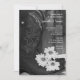 Erleben Sie Ihre Hochzeitsfeier mit den charmanten Rustikalen Cowboy Boots und Daisies Western. Diese lässige und dennoch elegante Country-Chic-Ehe lädt mit einem digital verbesserten Schwarz-Weiß-Foto von Leder-Western Cowboy-Stiefeln mit weißer Blume-Blüte und verwittertem Stallholz ein.