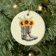 Rustikale Cowboystiefel mit Sonnenblumen Keramik Ornament