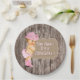 Cowgirl Baby Duschpapier Teller mit einem hübschen Baby Cowgirl mit einem niedlich rosa Cowboy Hut und rosa Bandanna mit Burlbanner auf einem rustikalen Holzhintergrund. Sie können Text hinzufügen, um das Baby zu personalisieren, und verschieben Sie es nach Bedarf. Sie können auch den Einbruch- und Holzhintergrund entfernen, um die Hintergrundfarbe Ihrer Wahl hinzuzufügen.