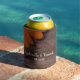 Behalt deine Getränkedosen mit einer personalisierten rustikalen Daisy und Barnholz Land Wedding Favor Can Cooler an Ihrem informellen Bauernhof oder Western Ranch Stil Brautparty oder Scheune Party Ehe Empfang. Dieses lässige und dennoch elegante Gastgeschenk mit kalten Möbeln bietet ein malerisches Blumenfoto einer orangefarbenen, dunkelblütigen Blume mit braunem Holzhintergrund.