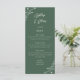 Rustikale, dunkelgrüne Botanische Hochzeitskarte Programm