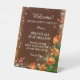 Rustikale Dunkelholz-Orangefarbene Hochzeitssicher Sockelschild