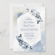 Eine elegante rustikale geometrische dustige blaue Aquarell Blumen Hochzeitseinladung. Das Hotel bietet ein einzigartiges Design, das sich an anderer Stelle nicht befindet und einen modernen rustikalen Charme unterstreicht.