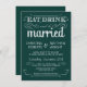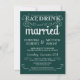 Essen Sie, trinken Sie, und seien Sie verheiratet -- Land-Hochzeitseinladungen der Vintagen Art rustikale -- Wirble, gelockte Rollen und Altmode Typografie auf Smaragdwaldkiefer grünen Hintergrund. Fügen Sie Ihre Namen und wedding Info in dieser bedienungsfreundlichen Schablone hinzu. Elegant aber Spaß und wunderliches, kann Tafelart-Skriptschreiben für Ihr formales oder halb-formales Retro Hochzeitsthema geändert werden. Lässige moderne Art ist für trendy zeitgenössische Hochzeiten mit einer Spaß-Touch des hoch entwickelten Charmes für die traditionelle Braut und den Bräutigam perfekt. Treten Sie mit uns bitte für Hilfe bei der Kundenbezogenheit in Verbindung, wenn Sie zusätzlichen Raum für Ihre Hochzeitsdetails benötigen. Andere Größen und Tafelarten verfügbar.