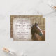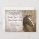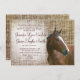 Diese rustikale Land-Western-Hochzeitseinladung hat ein schöne Kastanie farbiges Pferd auf einem Hintergrund des Leinwanddruckes. Der Hintergrund ist ein Druckleinwandentwurf, nicht tatsächliches Leinwandgewebe. Die Rückseite der Einladung hat den gleichen rustikalen Landart-Leinwandentwurf mit dem Wort "Liebe" im Skript. Sie konnten diese Benennung ändern, um sie mit den Braut- und Bräutigamnamen zu personifizieren, wenn Sie zu wollten. Diese Landthema-Hochzeitseinladungen sind für Cowboyhochzeiten, -bräute und -Bräutigams, die Pferde reiten oder zeigen, und -jedermann perfekt, der ein Cowgirl oder Liebepferde ist, oder haben ein Pferd, einen Bauernhof oder themed eine Hochzeit der Ranch.