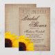 Rustikale Sonnenblume-Leinwand-Brautparty-Einladungen mit einem Druckleinwandhintergrund und einer schönen gelben Sonnenblume in der unteren Ecke. Ändern Sie einfach die Benennung auf dieser bedienungsfreundlichen Schablone zu Ihren Selbst. Doppelseitiger Entwurf. Die Leinwand ist gerade ein Druckentwurf, NICHT tatsächliches Leinwandgewebe.