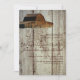 Eine einfache rustikale Hochzeitseinladung mit einer rustikalen Stallhalle am oberen Ende und einem Hintergrund aus Stallholz.