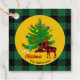 Rustikale Festdekoration mit Elche und Weihnachtsbaum, karierter, mit grünen und schwarzen Büffeln unterstrichener Familienname