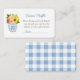 Blume in Herbsttönen (Rot, Orangen, Gelb) in einer preppy Ingwer Glas Vase für dieses Baby Dusche Gehäuse Karte Design. Auf der Rückseite befindet sich ein Gingham-Karo in Weiß- und Mittelblau (Sie können das Blau in jede andere Farbe ändern, indem Sie das Designwerkzeug eingeben und die Hintergrundfarbe ändern).