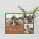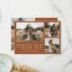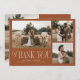 Rustikale und elegante Hochzeit Dankeschön-Karte mit einem Typografie-Text, der "danke" in einem Schriftart, der mit Skript-und Serif-Schriftart gemischt ist. Diese Vorlage hat 3 Bilder auf der Vorderseite und 1 auf der Rückseite. Die Hintergrundfarbe ist Terrakotta.