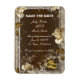 Rustikal brauner Hintergrund mit weißen Rosen und goldenen Hochzeitsringen. Diese schöne Rettung des Datums Magneten ist eine stilvolle, lang anhaltende Art, Ihren großen Tag zu verkünden. Personalisieren Sie den Magneten, indem Sie den Text in den angegebenen Feldern ändern. Sie können den Stil, die Größe und die Farbe des Schriftartes ändern.
