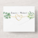 Rustikale, elegante, moderne Kalligraphie-Schrift, reine, weiße Ganze-Hochzeitseinladung mit Imitaten goldenes Seilherz, Aquarell Eukalyptusgrün und individuelles Bild des Ehepaares hinten. Fügen Sie Ihr Foto, Ihre Hochzeitsdetails und uAwg.