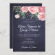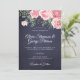 Elegantes Kalligrafieschrift dunkelblaue Kalkboard Hochzeitseinladung Mitternacht mit schönen rosa Rosen mit grünem Blattwerk und Blätter. ++++++++++++ Einfach mit Ihren Daten personalisieren! +++++++++++++++ Die Einladung ist geeignet für Frühjahr-, Sommer- oder Herbstgarten themed, im Freien Hinterhof rustikale elegante Hochzeiten.