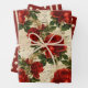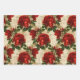 Drei Blatt Packpapier zur Koordinierung rustikalen rot und cremefarben. Blatt 1 ist ein rotes Blumenmuster auf cremefarbenem Hintergrund, Blatt 2 ist ein cremefarbenes Polka-Punktmuster auf Rot/Bordeaux, Blatt 3 ist ein cremefarbenes und rot/burgund gestreiftes Muster. Kontaktieren Sie uns für Hilfe bei der Anpassung oder um passende oder koordinierende Produkte anzufordern.