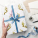 Rustikales Verpackungspapier, die ImitatgoldGlitter-Druckrotwild kennzeichnend Geweihe, kopieren. Der Hintergrund ist weiß.