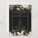 Diese rustikale Hochzeitseinladung ist sauber und dekorativ und bietet einen schönen Kiefernhain mit Kiefernfüßen auf elegantem schwarzen Hintergrund mit Goldlack
